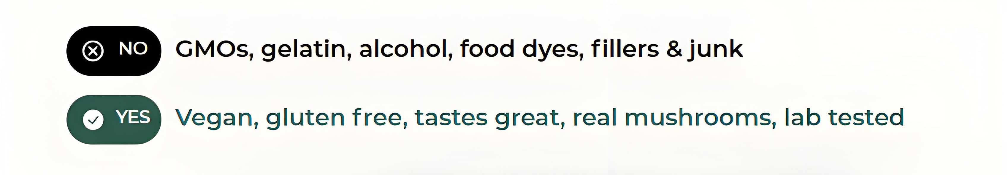 Mushrooms have never tasted THIS good before. Get the mushrooms you love and benefit from, without the nasty taste from powders and oils.